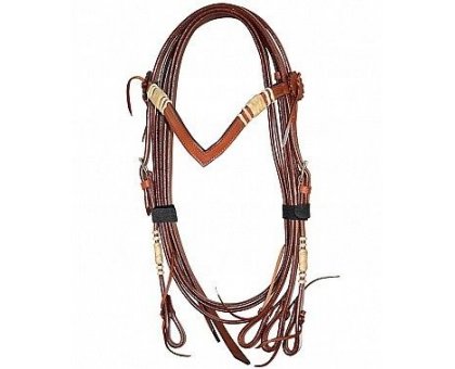 Briglia western frontalino a V con rifiniture rawhide e completa di redini