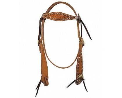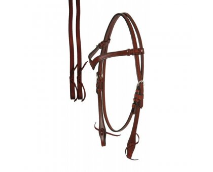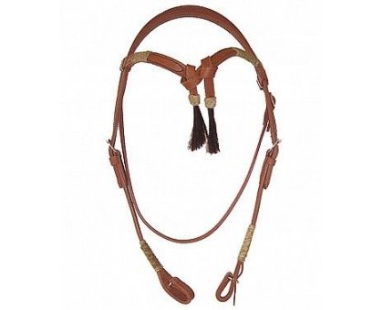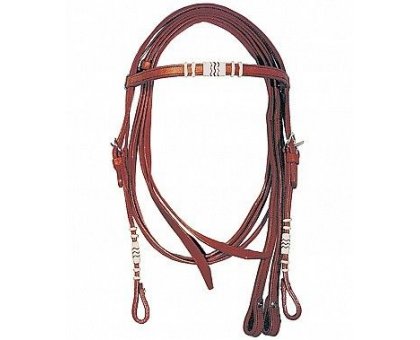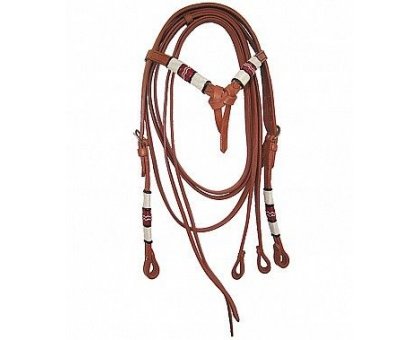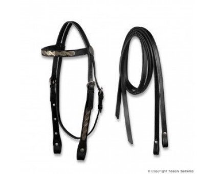 Descrizione: Briglia western frontalino a V con rifiniture rawhide e completa di redini