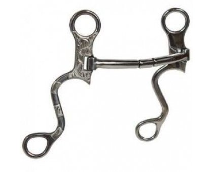 Morso western snodato inox, imboccatura con inserti in rame, aste lunghe decorate. Misura 12,5 cm.